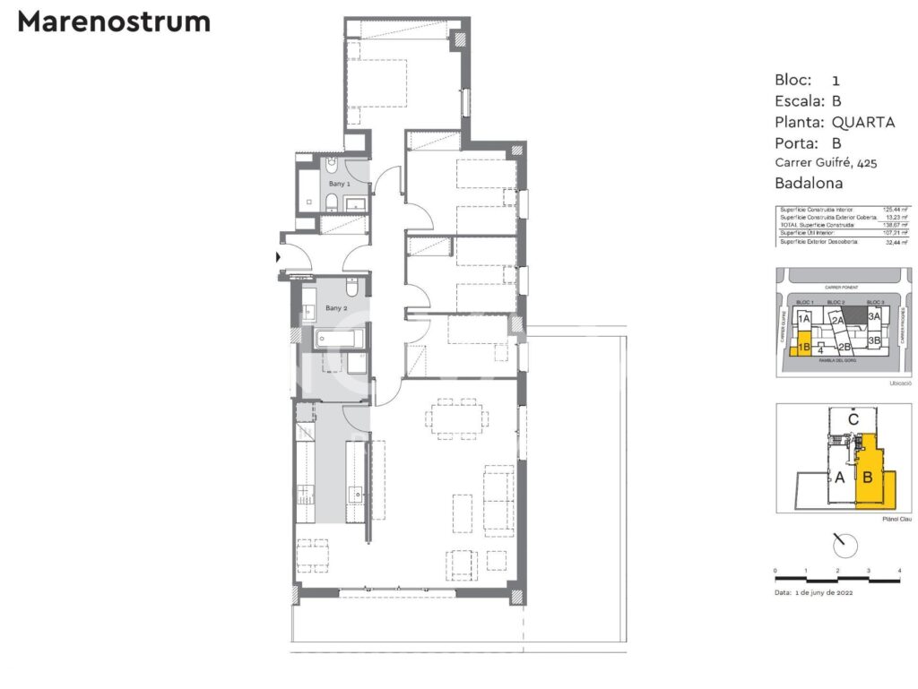 Residencial Marenostrum es una destacada promoción de obra nueva en Badalona. Este gran conjunto residencial se compone de 206 viviendas de 2, 3 y 4 dormitorios, incluyendo también algunas unidades de protección oficial , junto con 7 locales comerciales. Su localización es excepcional, junto al Canal del Puerto de Badalona , ofreciendo a los propietarios espectaculares terrazas privadas con vistas sobre el litoral mediterráneo. Además, goza de una excelente conexión con Barcelona (a solo 3 km) , el Aeropuerto de El Prat , y está próximo al centro de Badalona y a las extensas redes de senderos de la Serralada de Marina.