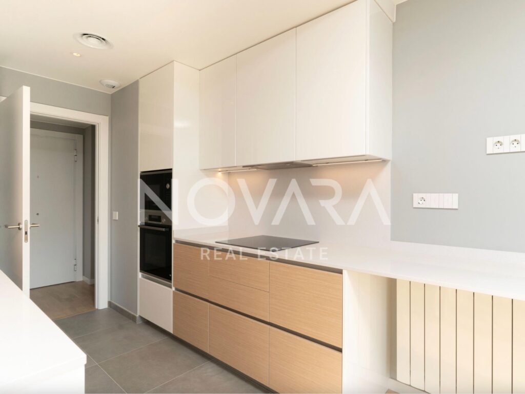 El proyecto Marenostrum ha sido diseñado bajo estrictos criterios de sostenibilidad, alcanzando la máxima Clasificación Energética A. Este compromiso se materializa en un avanzado sistema de climatización por aerotermia (sistema aire-agua) , una energía limpia que reduce las emisiones y el coste para el usuario. La calefacción se distribuye mediante radiadores de pared de aluminio (aptos para baja temperatura) , y la refrigeración se realiza a través de fan-coil y conductos. Los interiores son amplios, luminosos y cuentan con acabados de primera calidad : pavimento de parqué multicapa de madera natural de roble en salón y dormitorios , cocinas equipadas con electrodomésticos Bosch (incluyendo placa de inducción, horno pirolítico y microondas) , y baños con sanitarios Roca y grifería Tres.