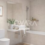 Cocinas: Equipadas con armarios modulares, encimeras de aglomerado de cuarzo tipo Silestone Blanco Zeus y electrodomésticos Bosch (incluyendo placa de inducción, horno eléctrico y microondas integrable).