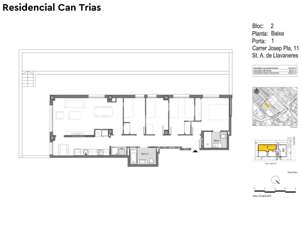 Residencial Can Trias es una exclusiva promoción de obra nueva en Sant Andreu de Llavaneres, un municipio costero ubicado a solo 35 km de Barcelona. Esta ubicación es ideal para quienes buscan la tranquilidad y el contacto con la naturaleza (entre el mar Mediterráneo y el Parc Natural del Montnegre i el Corredor) sin renunciar a una excelente conexión con la ciudad. El conjunto residencial está formado por tres edificios plurifamiliares que ofrecen una variedad de viviendas de 2, 3 y 4 dormitorios.